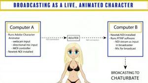The couple described Newtek NDI as a sort of bridge between the animation software and broadcasting component. Newtek NDI “essentially allows you to use your router like a TV switchboard,” Max explained, adding that it allows you to “channel different streams through it.”