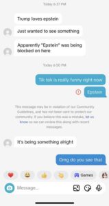 Some users have shared screen recordings purporting to show private messages failing to send when Epstein’s name is included. The videos have fueled concern online about potential censorship, though TikTok has not publicly verified or explained the behavior shown in the recordings.