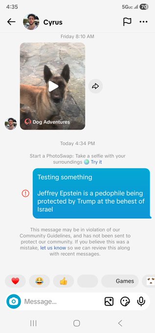 The potential restrictions highlight broader free speech concerns about social media platforms’ power to control discourse around controversial topics. If TikTok is indeed filtering private messages based on specific names or subjects, it represents a significant escalation in content moderation that could set precedent for other platforms to implement similar measures.