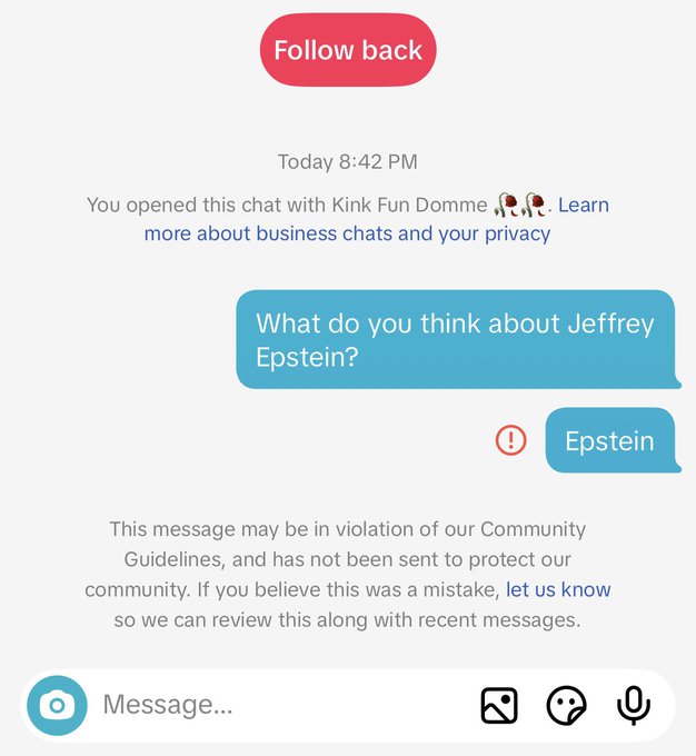 Is TikTok only increasing its censorship tactics under new US-owned leadership? TikTok users have reported what they believe is new censorship targeting mentions of Jeffrey Epstein in private messages, though the company has not confirmed any policy changes. The claims have circulated widely on social media platforms in recent days, with users expressing frustration about apparent content restrictions.