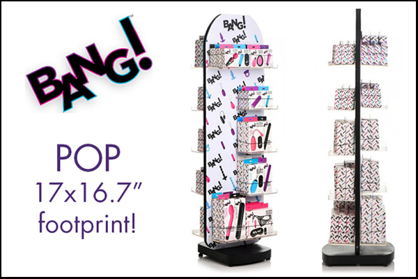 XR Brands is now shipping the BANG! POP display, a floor unit designed to turn heads with its popping bright colors and fresh, white background. This display showcases the best BANG! has to offer, including 20 different products and 58 individual items from every in-demand product category, and presented perfectly for impulse purchases in a manageable footprint.